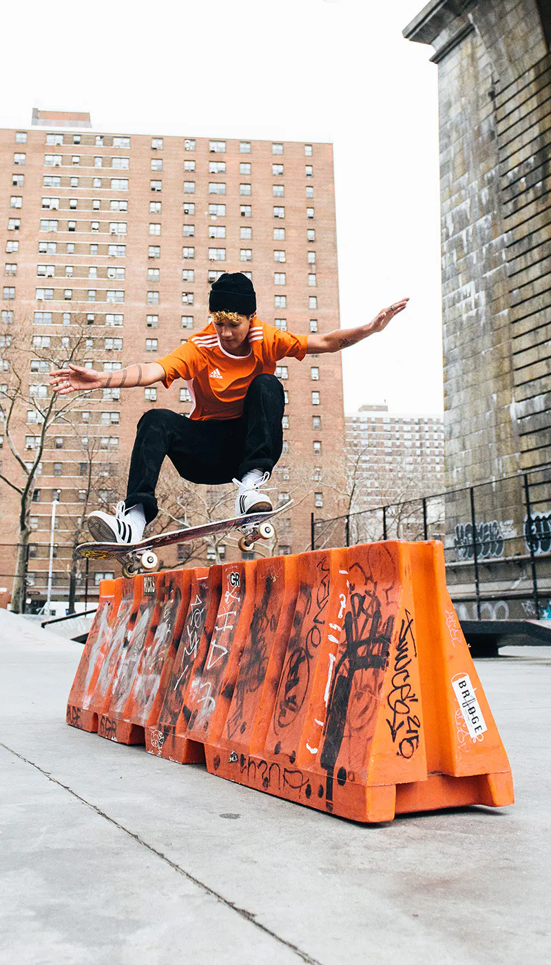 Imagine being twelve years old and handing your local skate shop a list of tricks as a makeshift resume. Pretty bold, right? This is just one story from Jenn Soto that illustrates her unique confidence and approach to life. Never one to back down or feel like she doesn’t belong, Jenn refuses to settle for status-quo. Known for her fro-top hairstyle, nose ring, and infectious smile, Jenn transforms every room she enters with pure energy. For Jenn, making her dreams a reality came from maintaining this simple outlook: “There’s no time for the petty or the gossip. I’m just here to skate and if you’re down, let’s skate.”