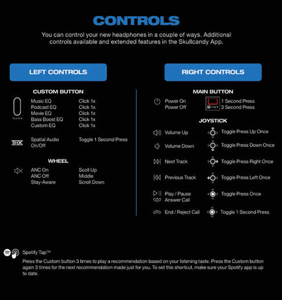 • Although, you may also customize this button action within the Skullcandy APP.