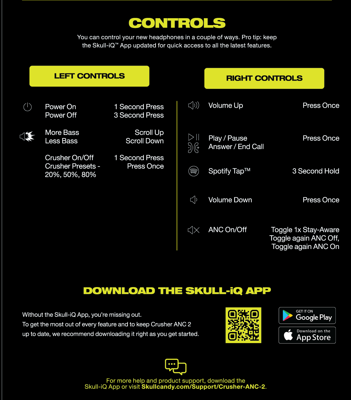 To unlock your headphones’ Skull-iQ features, scan the QR code in your Quick Start Guide to download the Skull-iQ App.