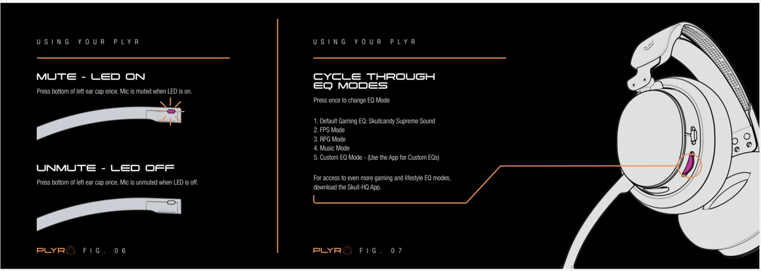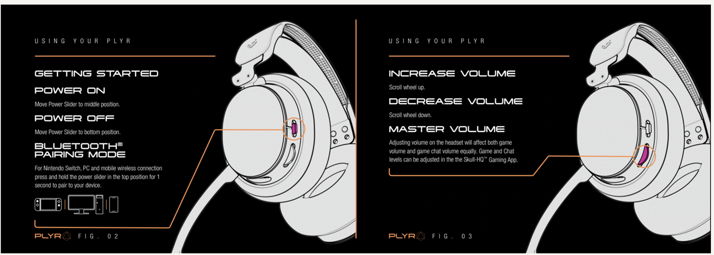 Out of the Box, your PLYR has a removable sticker on the left earcup with user control instructions.