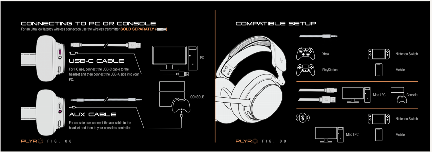 - For Wireless Ultra-Low Latency, connect your PC with the PLYR Wireless Transmitter (Sold Separately, see PLYR Wireless Transmitter User Guide link: )