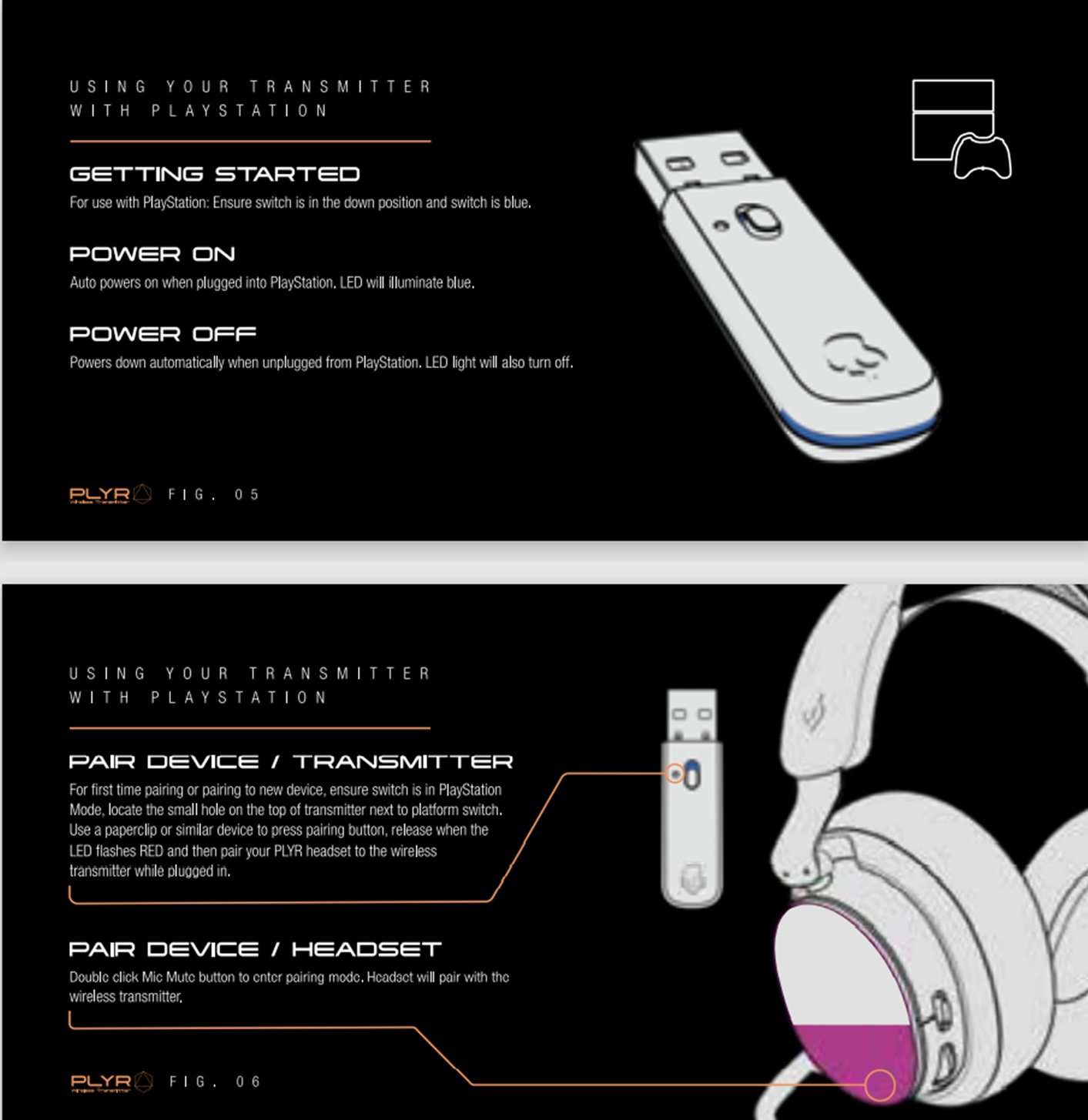 1. Connect the PLYR Wireless Transmitter to any USB-A port on your PlayStation