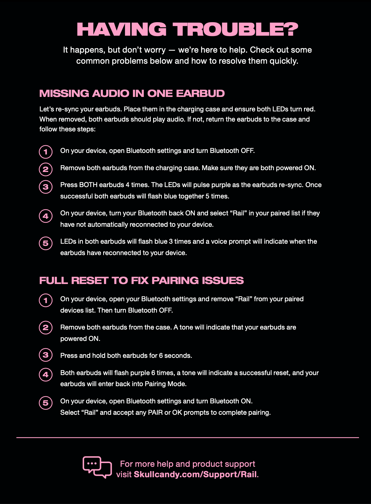 3. Both earbuds are now in Pairing Mode. Simply turn on your device’s Bluetooth and look for “Rail” in your list of available Bluetooth devices.