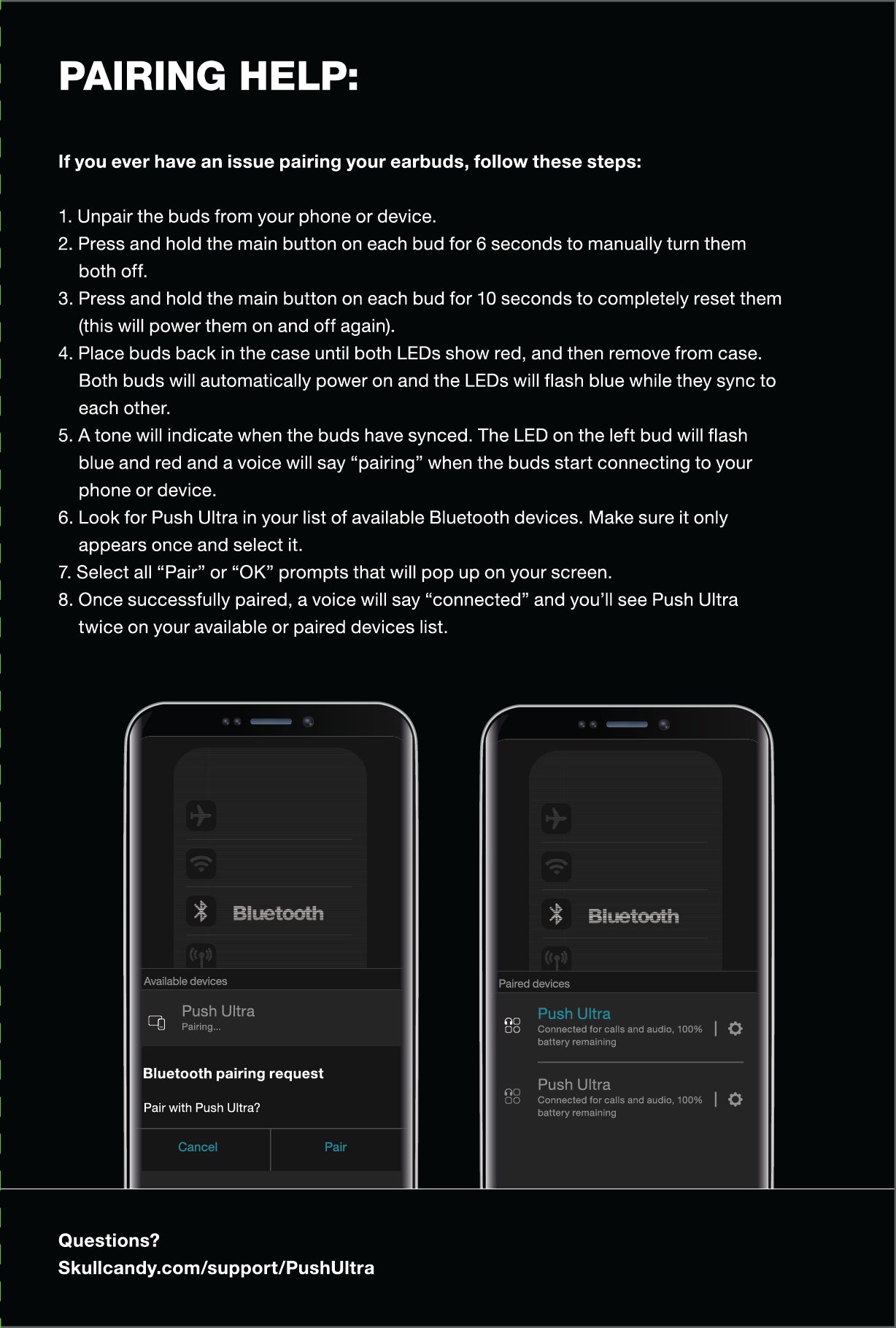 - Once successfully paired, a voice prompt will notify you are now “Connected” and you will see PUSH™ ULTRA twice in your “Paired devices” list.